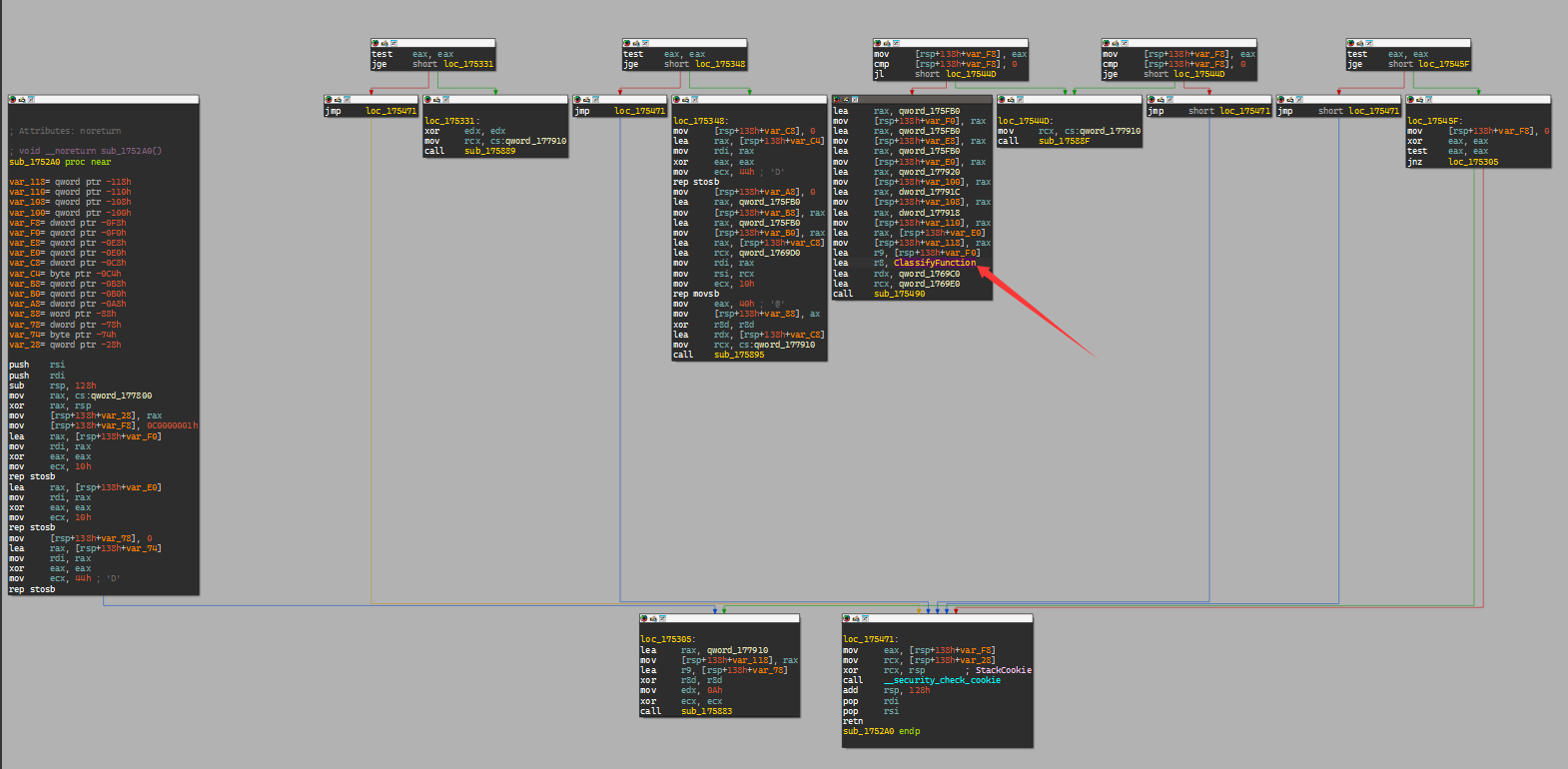 根据之前发现驱动注册 WFP 回调,可以分析出这边其实就是调用了 FwpsCalloutRegister0 函数注册 Callout,然后核心的那个函数便是 classifyFn。
