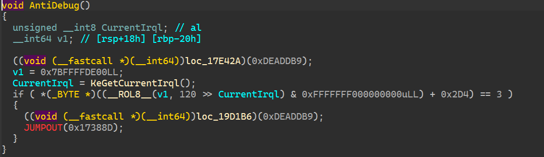 驱动被 VMP 加壳,采用断点 KeRevertToUserAffinityThread 后 Dump 脱壳后驱动程序。