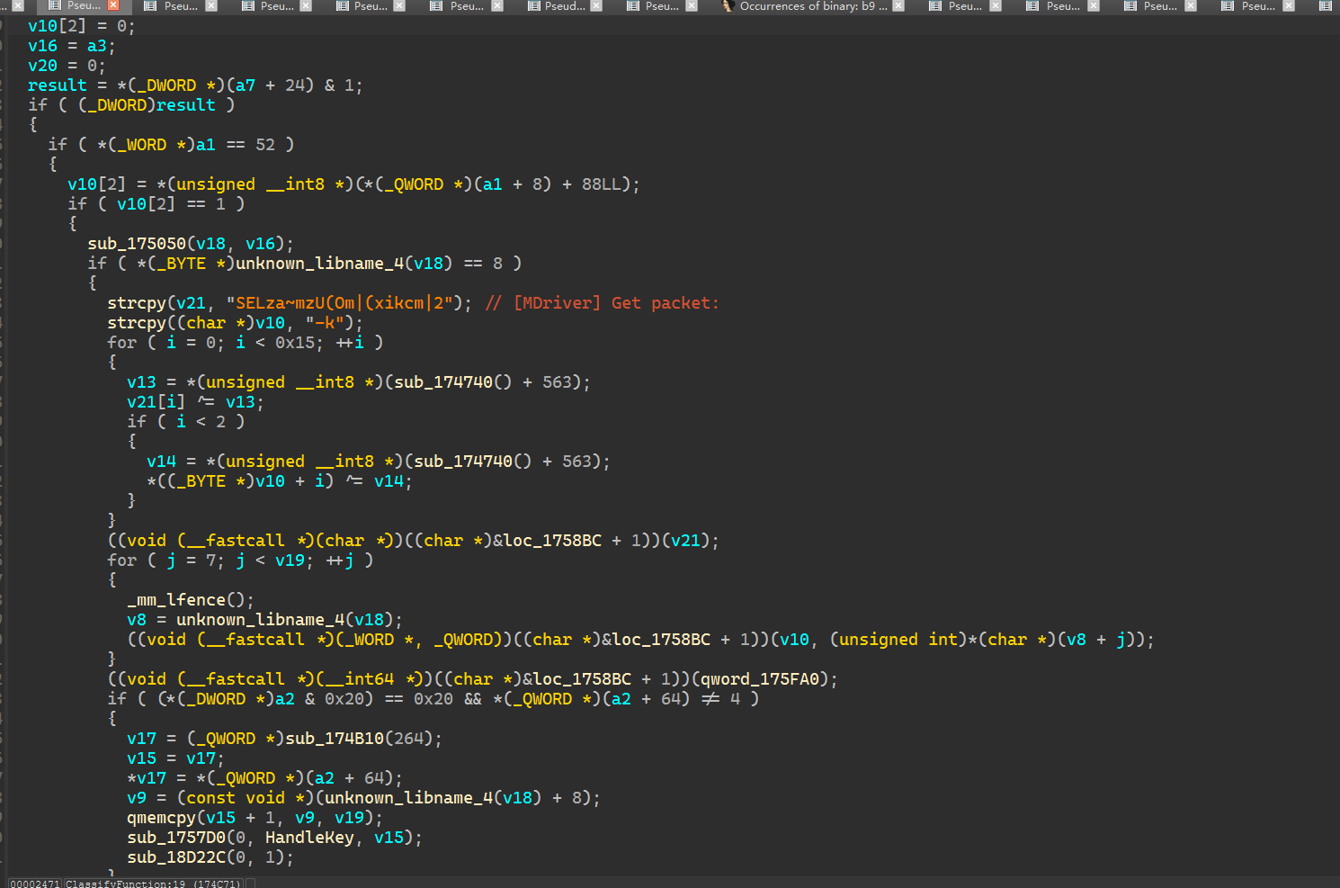 这里有个字符串解密出来是”[MDriver] Get packet:”