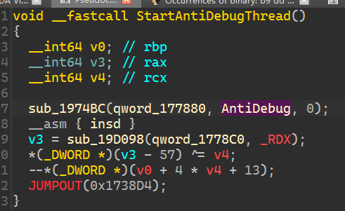 在刚刚调用反调试的地方往上走两层这边有个关键函数。