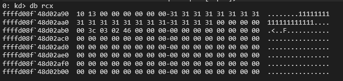 可以看到 rcx 里面就是发包发送的”11111111111111111111”字符串。
